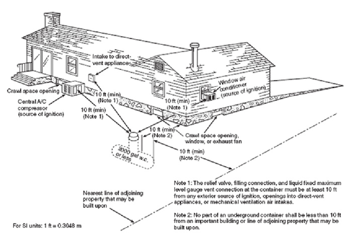 You can use these diagrams to help in determining where to place your residential propane tank. Please consult with a professional for final tank placement and installation.